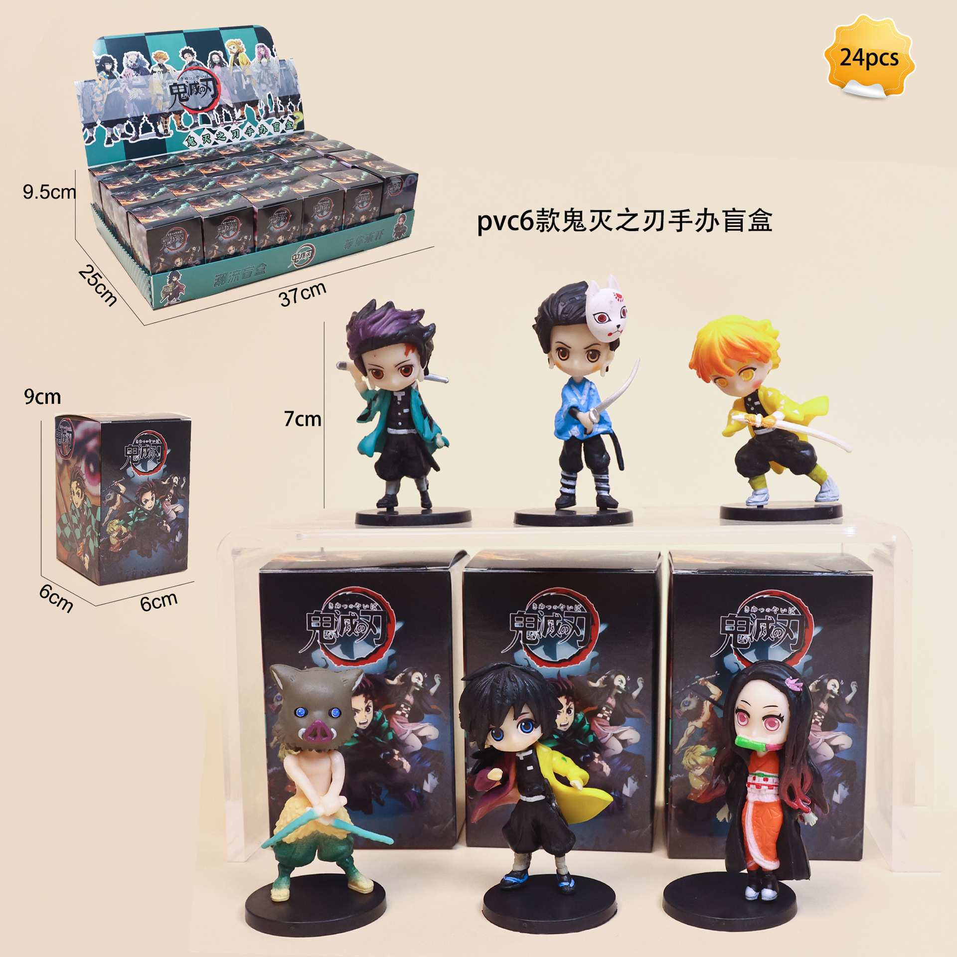 新款6款鬼灭之刃盲盒袋桌面动画周边动漫手办pvc汽车蛋糕摆件 随机1个